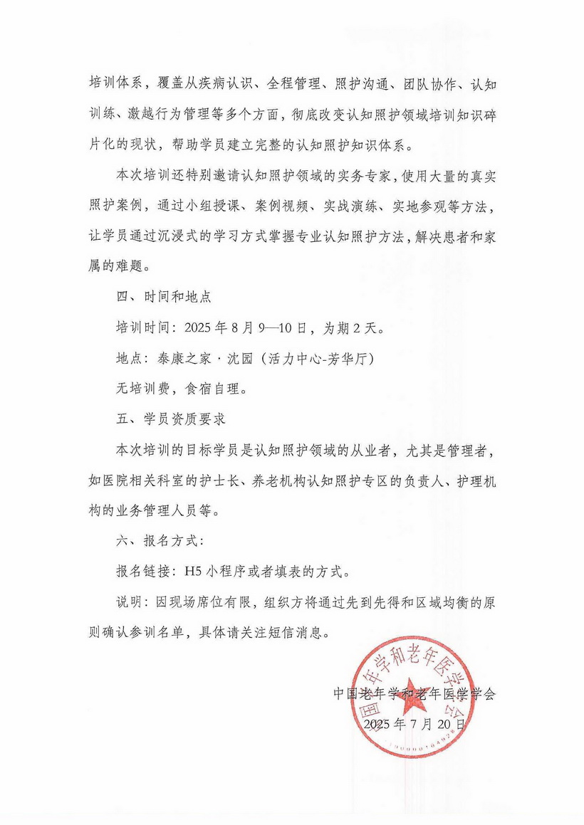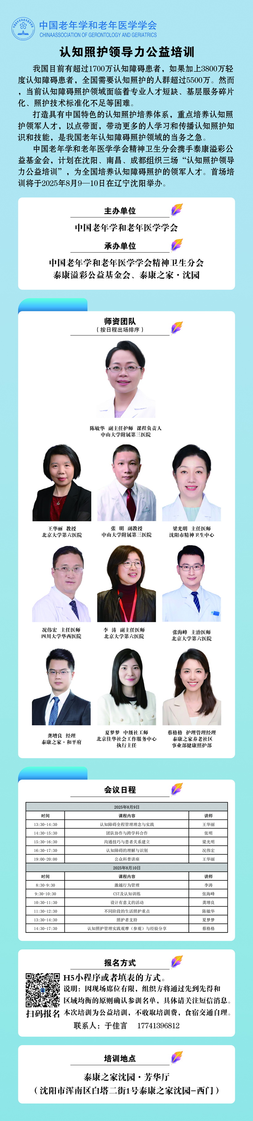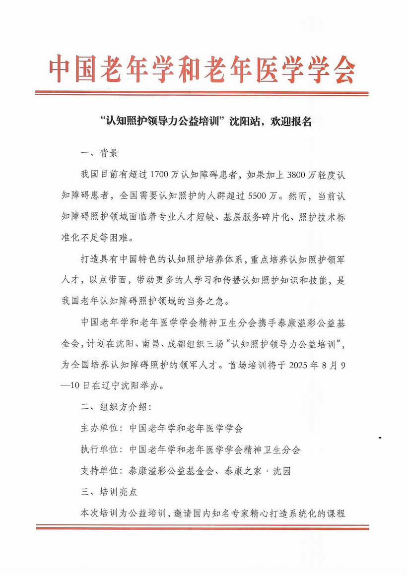 “認知照護領導力公益培訓”沈陽站,歡迎報名